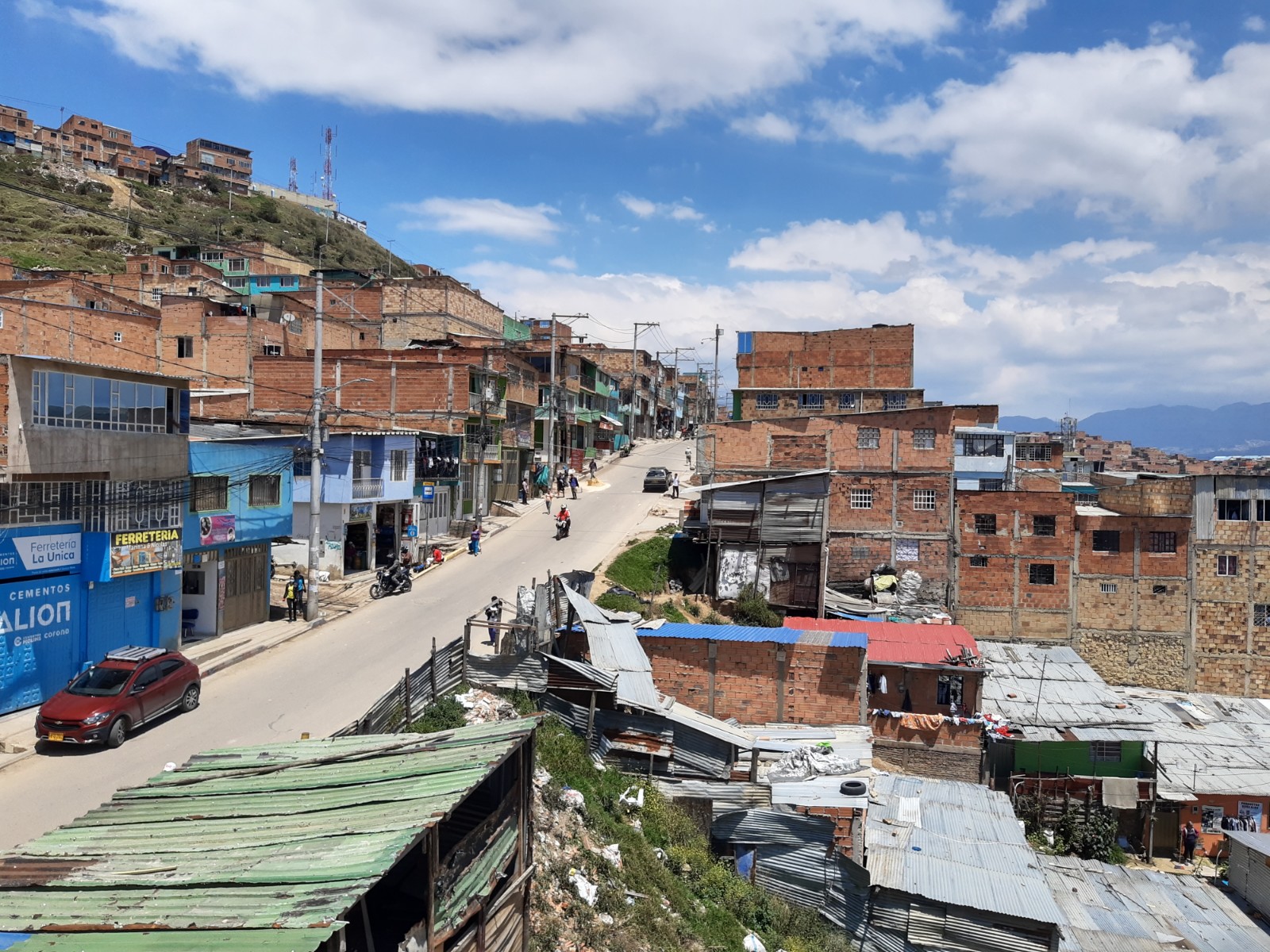 Samen met Reinel en Andres (introductie volgt) van FCU rijden we door vanuit het luxe noorden waar de politici resideren Bogotá naar een van de armste wijken in het zuiden, ‘Barrio Caracoli’ in het zogenaamde ‘ciudad Bolivar’ waar FCU in twee verschillende gebouwen kinderen en hun ouders ondersteunt.
